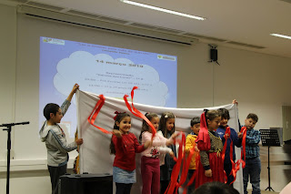 A festa da leitura continua, desta vez com a representação da história “A Rainha das Cores”, de Jutta Bauer, pelo 1.º ano, turma B, da EB n.º1 de Benavente, da docente Marta Raio (nossa fantástica Marta La Féria), com duas sessões, a primeira para as turmas do ensino pré-escolar e a segunda para as turmas de 1.º e 2.º anos. A turma do 12.º F, também, fez questão de estar presente. Obrigada a todos.